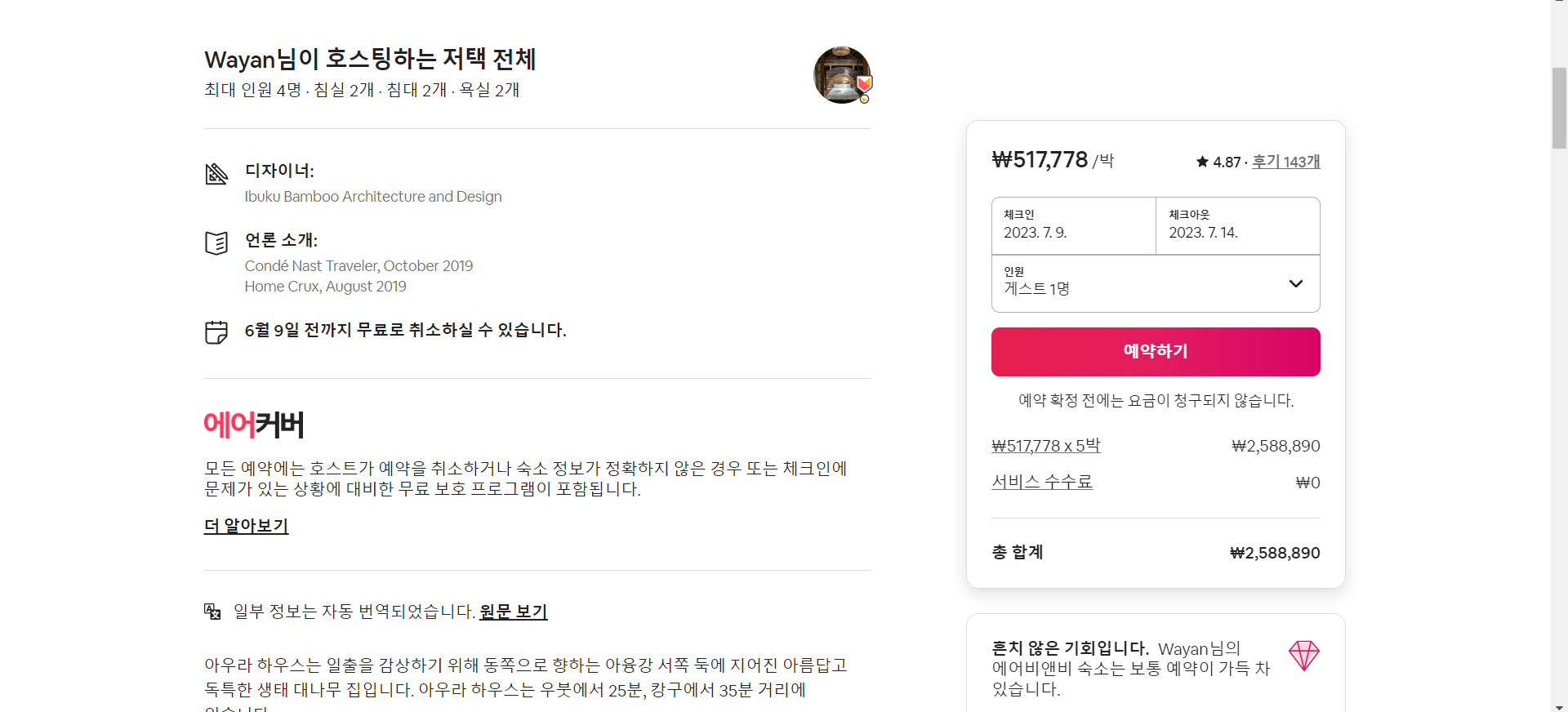 아래는 실제 에어비앤비 상세 페이지이다.